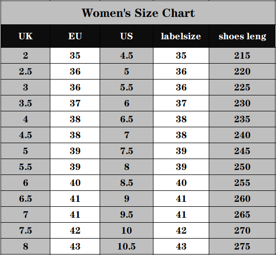 Tips: Please choose the shoe size according to the shoe length.