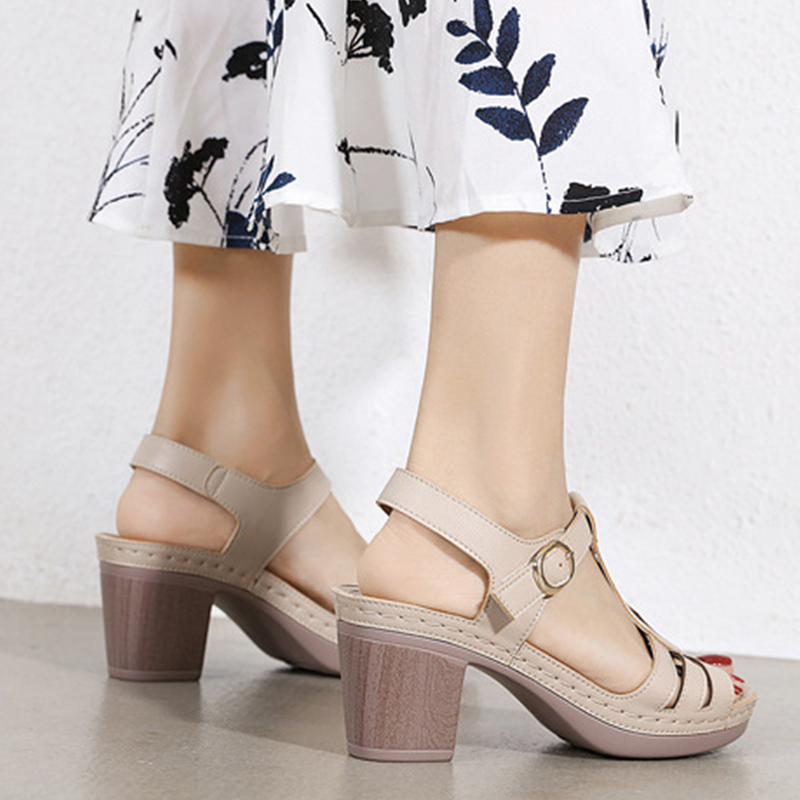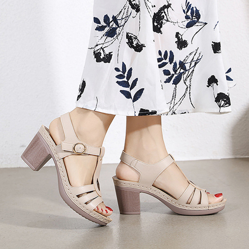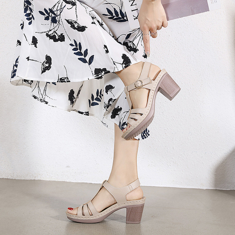 🔥Last Day Promotion 50% OFF - Women's Ankle Strap Leather High Heel Sandals