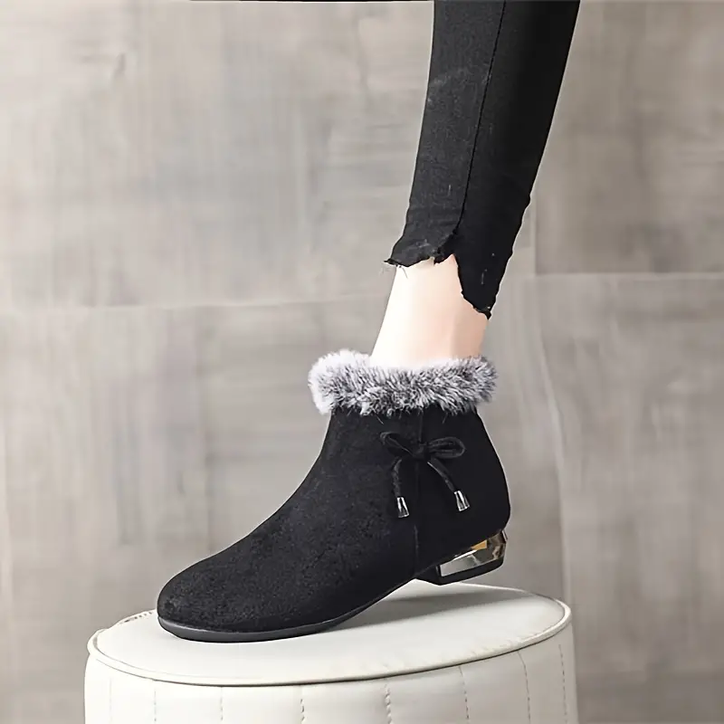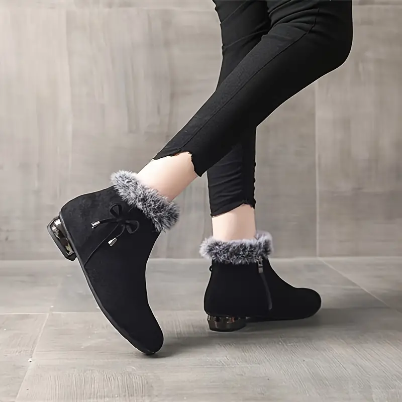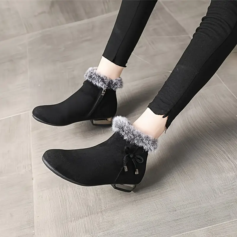 Women's Chunky Heel Short Casual Side Zipper Plush Lined Boots